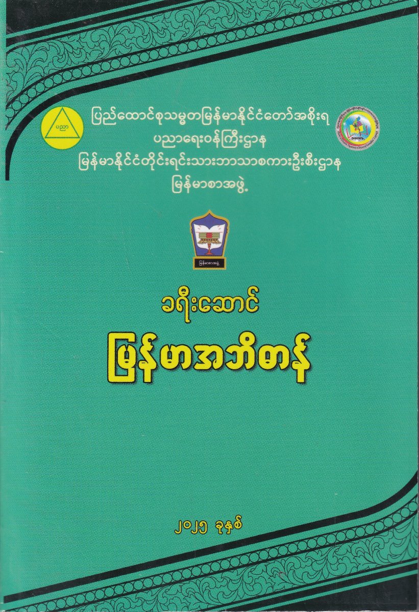 ပထမအကြိမ် ထုတ်ဝေသူ၏အမှာစာ မြန်မာလိုပြောဆိုရာတွင်ဖြစ်စေ၊ မြန်မာစာရေးသားရာတွင်ဖြစ်စေ မိမိ ဆိုလိုရင်းကို မှန်ကန်တိကျစွာ ထိထိမိမိ ပြောဆိုရေးသားခြင်းဖြင့် ဆက်သွယ်မှုအရာ ရောက်စေသကဲ့သို့ အမျိုးသားစာပေတည်တံ့ခိုင်မာရေးကိုလည်း လက်တွေ့အကျိုးပြုရာ ရောက်ပေသည်။ မြန်မာဝေါဟာရတို့၏ အသံထွက်၊ စာလုံးပေါင်းသတ်ပုံ၊ အနက် အဓိပ္ပာယ်တို့ကို အလွယ်တကူ ရှာဖွေလေ့လာရည်ညွှန်း အသုံးပြုနိုင်စေရန် ရည်သန်၍ ဤအဘိဓာန်ကို ပြုစုခဲ့ပါသည်။ မြန်မာစာအဖွဲ့က ပြုစုထုတ်ဝေပြီးဖြစ်သော မြန်မာအဘိဓာန်များ၊ မြန်မာသဒ္ဒါ၊ မြန်မာစာလုံးပေါင်းသတ်ပုံကျမ်း၊ မြန်မာ- အင်္ဂလိပ် အဘိဓာန်စသည်တို့နှင့် ညှိနှိုင်းတိုက်ဆိုင်ကာ လက်တွေ့အသုံးပြုရာတွင် အများဆုံးအသုံးဝင်မည်ဟု ခန့်မှန်းရသော ဝေါဟာရ တစ်သောင်းရှစ်ထောင်ကျော်ကို ရွေးနုတ်၍ ဤအဘိဓာန်တွင် ထည့်သွင်းထားပါသည်။