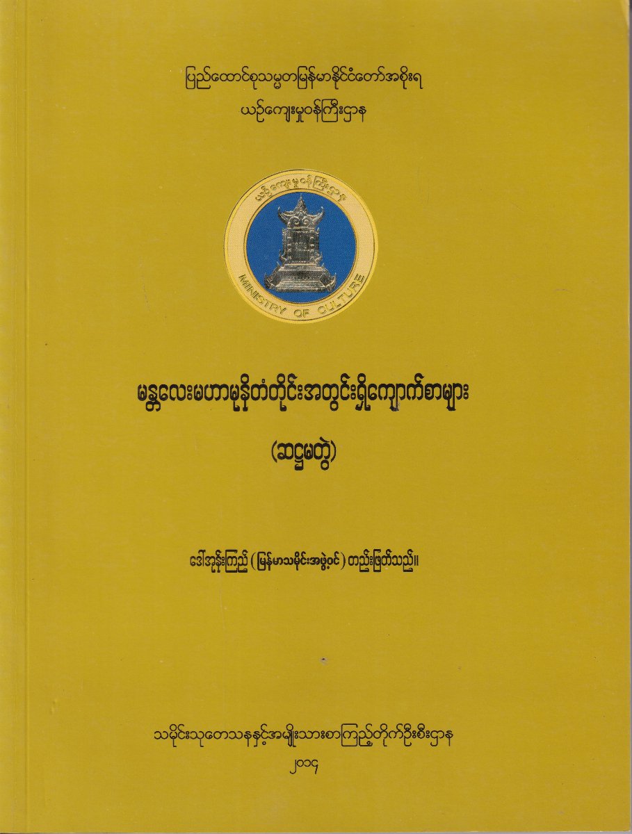 မန္တလေးမဟာမုနိတံတိုင်းတွင်းရှိကျောက်စာများ၊ ဆဋ္ဌမတွဲတွင် ပါဝင်သော ကျောက်စာ များသည် သက္ကရာဇ် ၆၈၁မှ ၇၁၈ အထိ ကျောက်စာတိုင် ၇၅ တိုင်ဖြစ်ပါသည်။ ပင်းယမင်းဆက် သီဟသူရမင်း(၁၃ဝ၉-၁၃၂၅)မှ ကျော်စွာမင်း(၁၃၅၀-၁၃၅၆)လက်ထက်ထိ ရေးထိုးခဲ့သော ကျောက်စာများဖြစ်ပါသည်။ ပင်းယခေတ် သီဟသူရ၊ ဥစ္စနာ၊ ငါးစီးရှင်ကျော်စွာ၊ သားတော်ကျော်စွာ မင်းများနှင့် ယင်းတို့၏မယ်တော်များ၊ မိဘုရားများ၊ မှူးမတ်များ၊ စစ်သူကြီးများ၊ မြို့သူကြီး၊ ရွာသူကြီးများနှင့် သူဌေးသူကြွယ်များ၏ ဘုရားတည်၊ ကျောင်းဆောက်၊ သိမ်ဆောက်၍ ဘုရား၊ ကျောင်း၊ သိမ်တို့အား မြေ၊ ထန်း၊ ကျွန်များကိုလှူသော အလှူမှတ်တမ်းများ ဖြစ်ပါသည်။ကျောက်စာများသည် အလှူမှတ်တမ်းပင်ဖြစ်သော်လည်း ပင်းယခေတ်၏ မင်းနှင့်မှူးမတ်၊ သူဌေး သူကြွယ်တို့၏ဆက်ဆံရေး၊ မြေလှူဒါန်းရာတွင် လိုက်နာရသည့်ဓလေ့ထုံးစံများ၊ ပင်းယခေတ်၏ စီးပွားရေး၊ လူမှုရေး၊ နိုင်ငံရေး၊ သာသနာရေး အခြေအနေများကို တစေ့တစောင်း ဖော်ပြနေ သဖြင့် ပင်းယခေတ်ကို အထူးပြုလေ့လာနေသော သုတေသီများ၊ ရှေးဟောင်းသမိုင်းကို စိတ်ဝင်စား သူများအတွက် ဤကျောက်စာများသည် များစွာအထောက်အကူပြုမည်ဟု ယုံကြည်ပါသည်။
