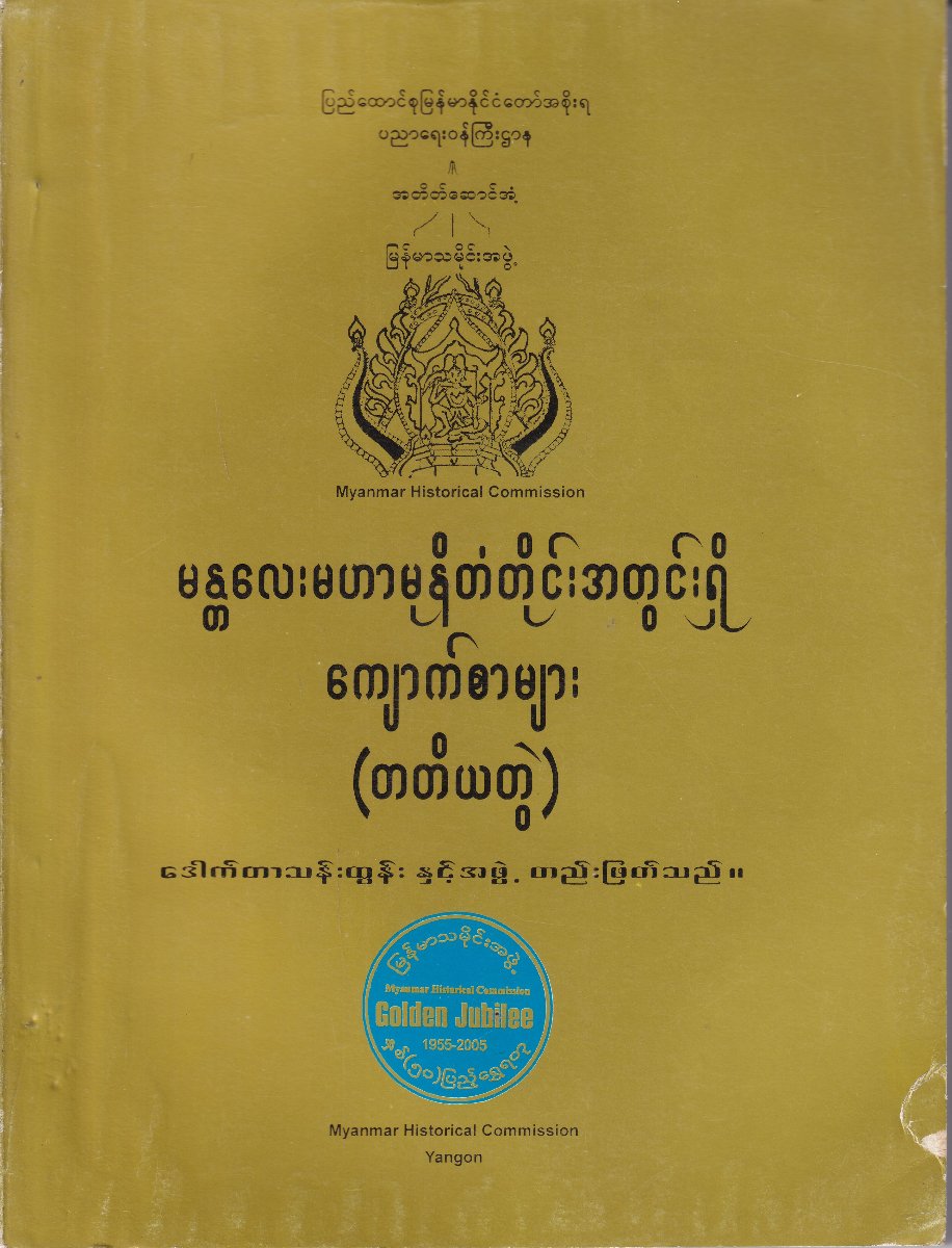 မန္တလေးမဟာမုနိတံတိုင်းအတွင်းရှိ ကျောက်စာများ (တတိယတွဲ)
