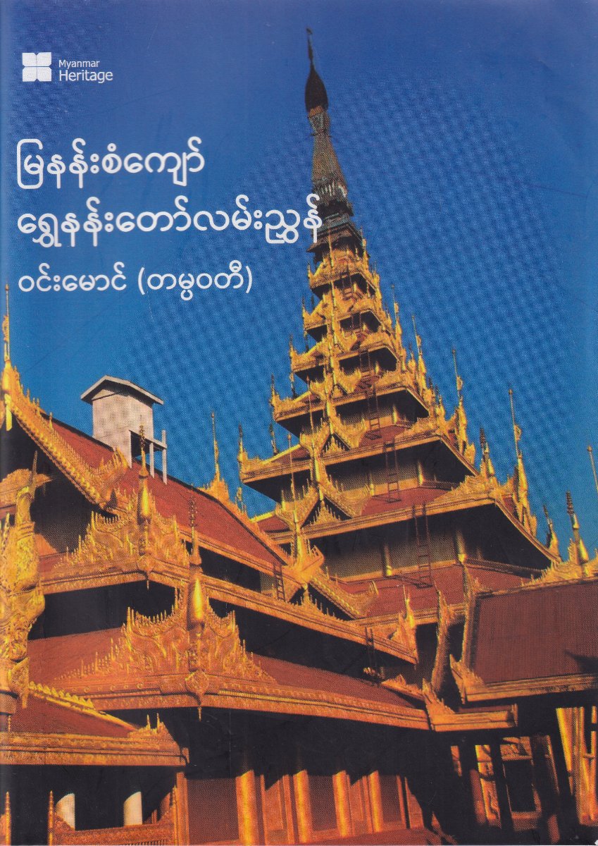 ၁၉၈၉ ခုနှစ်၊ နိုင်ငံတော် ငြိမ်ဝပ်ပိပြားမှုတည်ဆောက်ရေးအဖွဲ့ လက်ထက်တွင် မြနန်းစံကျော် ရွှေနန်း တော်ကြီးကို ရှေးမူမပျက် ပြန်လည် တည်ဆောက်ခဲ့ပါသည်။ ထိုသို့တည်ဆောက်ရာတွင် သမိုင်းအထောက်အထား မှတ်တမ်းများ လေ့လာပြုစုခြင်း၊ ပြန်လည်တည်ဆောက်ရန် စီစဉ်ခြင်းတို့အပါအဝင် မြနန်းစံကျော် ရွှေနန်းတော်ကြီး ပန္နက်ပုံစံနှင့် ပုံစံပါအဆောက် အအုံ တစ်ခုချင်းစီ၏ အသေးစိတ် အချက်အလက်များ၊ မှတ်တမ်းများကို ဖော်ပြထား သည်။ ထို့ပြင် မြနန်းစံကျော် နန်းဆောင်တော်များ၊ အရှေ့ပိုင်း မင်းခမ်းတော်အဆောင်များ၊ မိဖုရားဆောင်များနှင့် သမီးတော်အဆောင်များ၊ အနောက်ပိုင်း မင်းခမ်းတော်ဆောင်များ၊ မြနန်းစံကျော် ရွှေနန်းတော်ကြီး၏ ပန္နက်ပုံစံနှင့် ပုံစံပါ အဆောက်အအုံများအညွှန်းများ ကို ဖော်ပြထားသည်။ ဤစာအုပ်ကို ယင်းခဲထိပ်တင်မင်းသားကြီး၏ ကိုယ်တိုင်ရေးသားချက်များကို အဓိက မူတည်၍ ဝက်မစွပ် ဝန်ထောက်မင်း၏မှတ်တမ်းများ၊ ရွှေပြည်ဦးဘတင်၏ မှတ်စုများပါ စုပေါင်းပါဝင်စေလျက် ပြုစုရေးသားထားသည်။ လိုအပ်သည့်နေရာများတွင် ရုပ်ပုံ၊ ဓာတ်ပုံ များဖြင့် ဖော်ပြထားသည်။