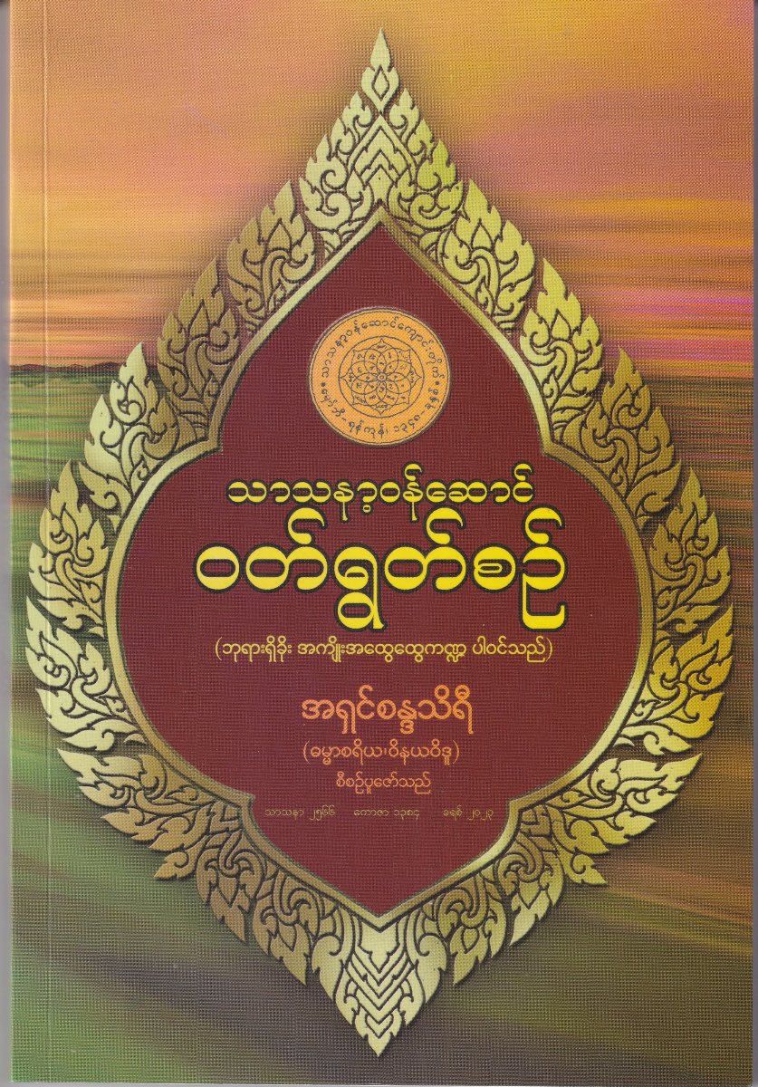 သာသနာ့ဝန်ဆောင် ဝတ်ရွတ်စဉ် အမျှဝေ-စသည်တို့ စနစ်တကျရှိစေရန် လွန်ခဲ့သော နှစ်အတန်ကြာ ကပင် လိုအပ်သော အနက်အဓိပ္ပါယ်များကိုပါ ထည့်သွင်း၍ ဘုရား ရှိခိုး ဝတ်ရွတ်စဉ်စာမူကို စီစဉ်ပြီးဖြစ်သော်လည်း အကြောင်းမညီ ညွတ်သောကြောင့် ပုံနှိပ်စာအုပ်အဖြစ် မရောက်ရှိခဲ့ပါ။ သံဃာတော် အပါး ၂ဝ-ကျော်ဖြင့် စတင်တည်ထောင်ခဲ့သော သာသနာ့ဝန်ဆောင်ကျောင်းတိုက်၌ ယခုအခါ သံဃာတော်အပါး ၂ဝဝ-ကျော်လာပြီဖြစ်ရာ သံဃာအများစု ဟိုဟိုသည်သည် ရှာဖွေ ကြည့်ရှု ကျက်မှတ်ရခြင်းမှ ကင်းဝေးစေလိုခြင်း, အဖြတ်အရပ်, ပုဒ် ပါဌ် မှန်ကန်စွာ စနစ်တစ်ကျ ဖြစ်စေလိုခြင်း-စသော အကြောင်းများ ကြောင့် ရွတ်ဖတ်ပူဇော်နေကျ အစီအစဉ်တွင် အမြဲအသုံးပြုနေ သော ဥပုသ်ပြုပရိကမ်, ပဝါရဏာပြုပရိကမ်နှင့်တကွ ကထိနကံ, ပရိဝါသာဒိကံ, ဥပသမ္ပဒကံဆောင်ပုံ၊ သင်္ကန်း, သပိတ်အဓိဋ္ဌာန် တင်ပုံ, ဥပဇ္ဈာယ်ယူပုံ, နိဿယည်း ယူပုံ-စသည်တို့ကိုပါ ထည့်သွင်း လျက် မူတစ်ခု သတ်မှတ်သည့်အနေဖြင့် စီစဉ်ပေးလိုက်ရပါသည်။ (တတိယအကြိမ် ရိုက်နှိပ်ရာ၌ ပြင်ဆင်ချက်, ဖြည့်စွက်ချက်များ ပါဝင်ပါသည်။)
